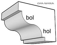 - onder hol, boven bol (hielojief, omgekeerd ojief, verkeerd ojief, cyma