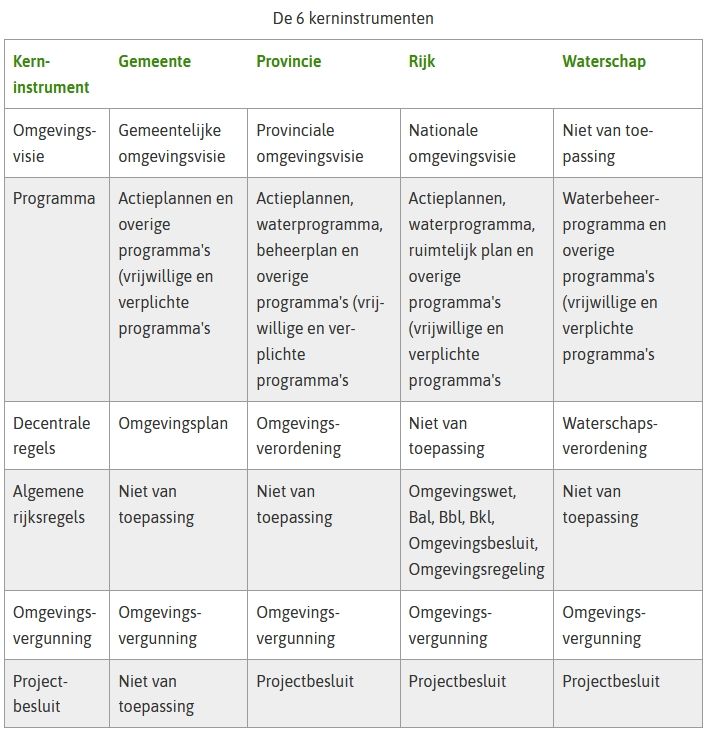 - De 6 kerninstrumenten Omgevingswet voor gemeente, provincie, rijk en waterschap (van IPLO)