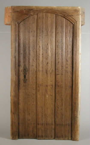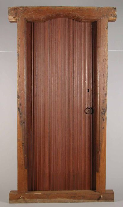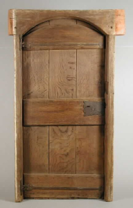 voorbeeld van een deurkozijn met (hier niet meer) verdekte oren bij de bovendorpel (voor- en achterzijde deur; klik op de afbeelding voor groter; museum rotterdam): ![]() |
