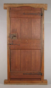 voorbeeld van een deurkozijn met zichtbare oren bij zowel boven- als onderdorpel (voor- en achterzijde deur; klik op de afbeelding voor groter; museum rotterdam): ![]() |