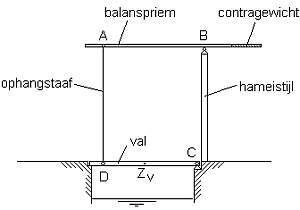 - de som van de statische momenten van het val en van de balanspriem ten opzichte van de lijn door de draaipunten op de hameistijl moet nul zijn.