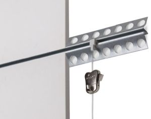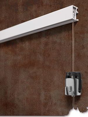 Afbeeldingen: - principe - rails - railhaken en draden - schilderijhaken |