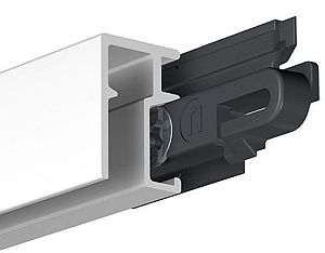- hangt in de rail en is daarmee vrijwel onzichtbaar, wat iets fraaier oogt (systemen Newly en Geckoteq)