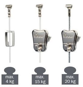 - de maximale belasting is mede afhankelijk van het type koord en van het type clip aan het schilderij zelf