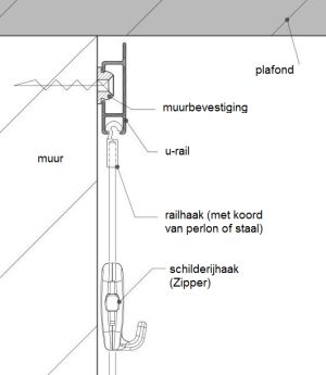 u-rail, t-haak, perlon draad en zipper schilderijhaak (stas): ![]() |