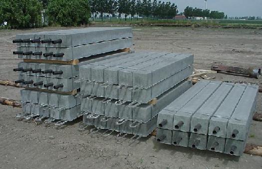betonnen oplanger (betonopzetter) op houten heipaal bij kassenbouw:![]() |