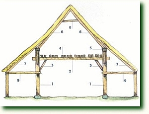 De oplanger is het verlengstuk van een dakspar waardoor het dakschild doorgetrokken kan worden. Soms wordt de aanloper zelfs doorgetrokken tot in het maaiveld waardoor het dak extra verstevigd wordt en waardoor het dakschild (vrijwel) tot op de grond kan reiken.