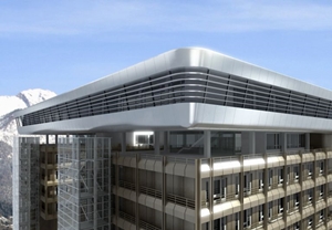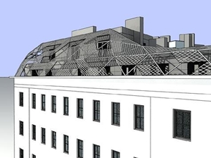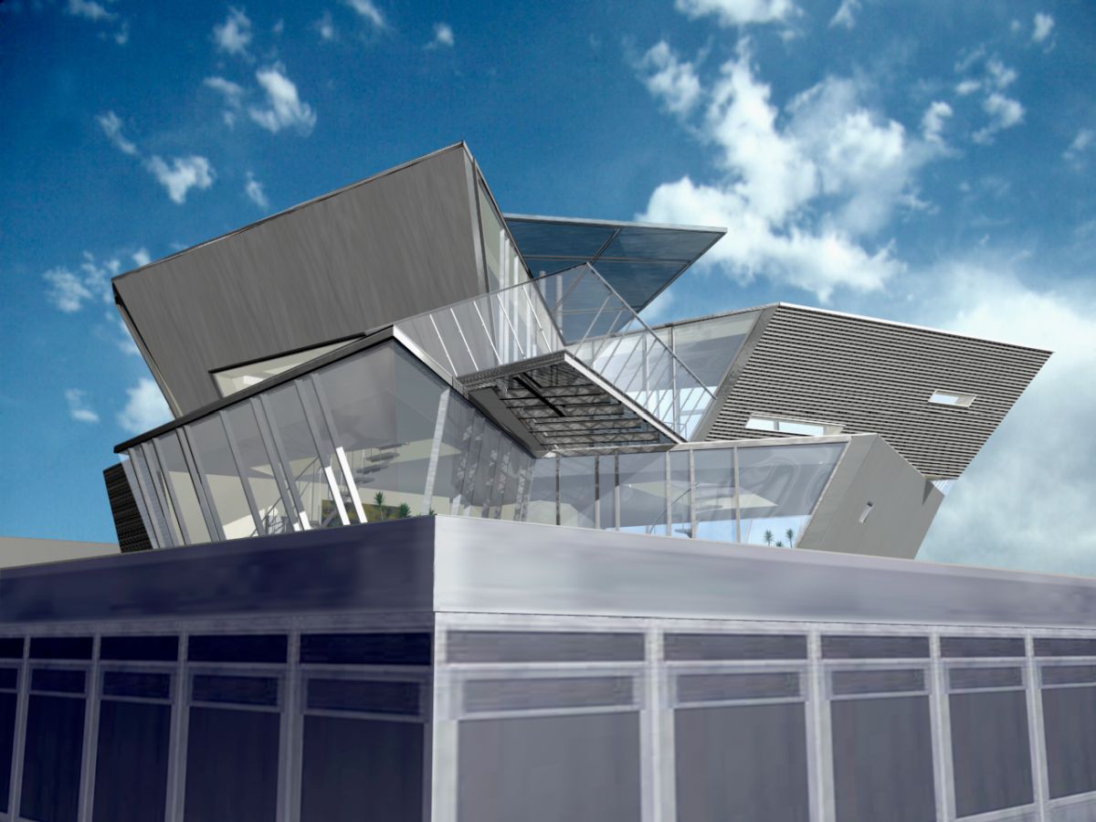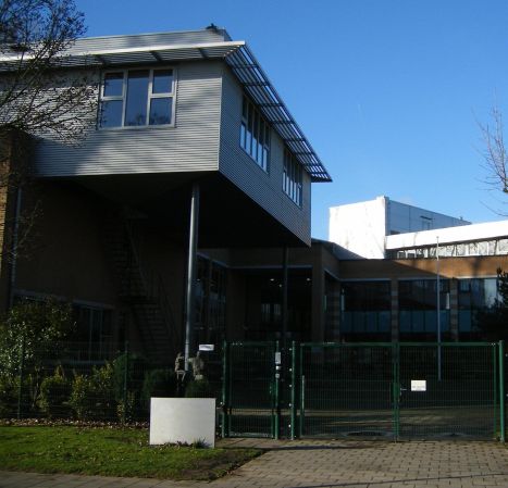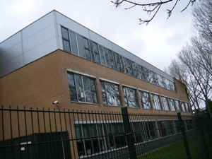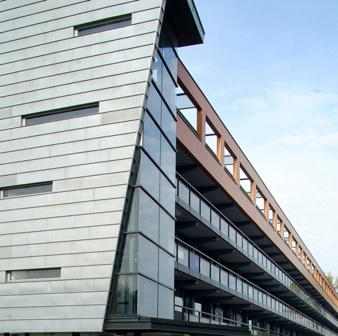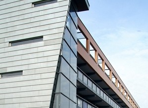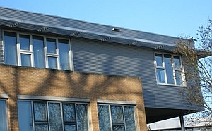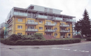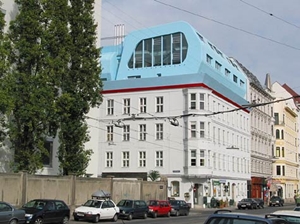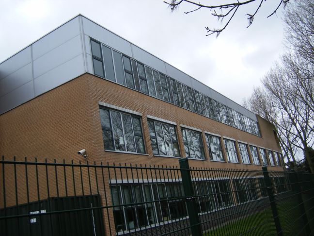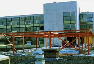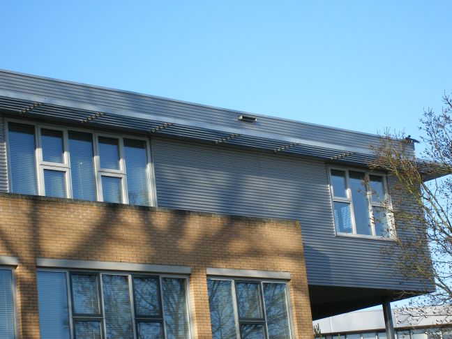 Al bij de bouw van het bestaande gebouw werd met uitbreiding rekening gehouden door een bakstenen "buitenmuur"; en er is op een aparte manier voor een overhellend deel gekozen (klik op de afbeeldingen voor groter): |