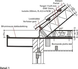 Meer ruimte, puntdak met dak naar voorzijde op plat dak: ![]() |
