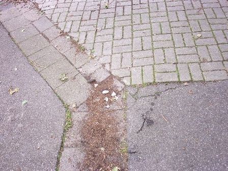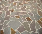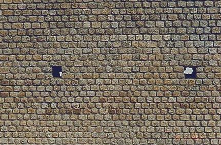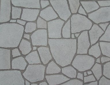 listatum (in beton/cement gedrukte grote stenen en rijen dunne