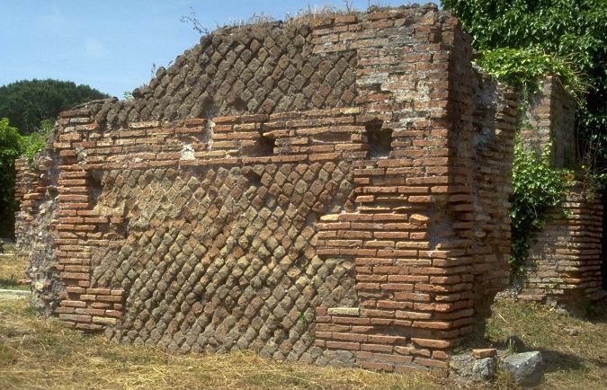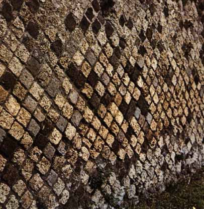 opus reticulatum (ruitvormig gelegde vierkantjes) (vanaf 1e eeuw v. chr.): |