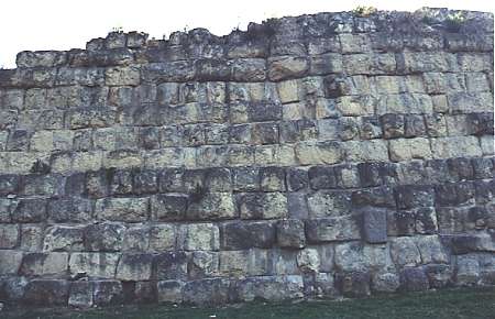 opus quadratum (met even grote stenen blokken) (vanaf 7e eeuw v. chr., maar dan zonder cement): |