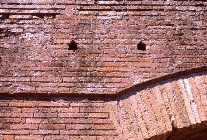 opus listatum (in beton/cement gedrukte grote stenen en rijen dunne stenen)