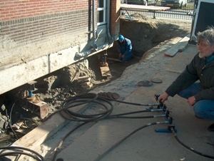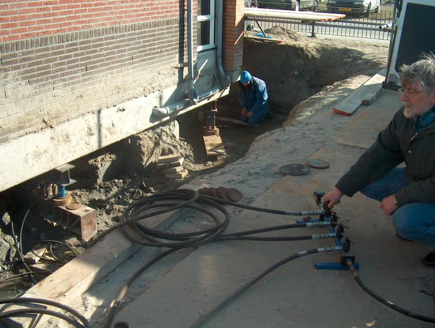 opgevijzeld worden. De door Walinco voor het vijzelwerk nieuw gemaakte stalen buispalen zijn veiligheidshalve enige meters dieper geslagen.