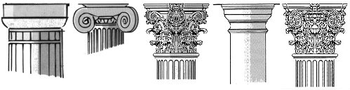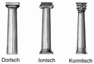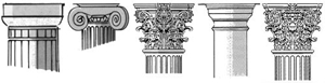 V.l.n.r. Dorisch, Ionisch, Korintisch, Toscaans en composiet:![]() |
