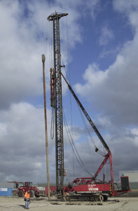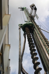 grout) door de holle boorschacht geïnjecteerd. De palen worden geboord tot in het pleistoceen,
