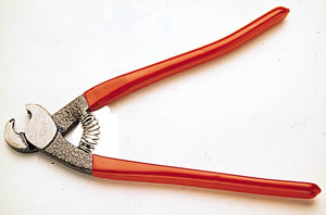Voorbeeld: nadat met de glassnijder een cirkel op een keramiektegel is gemaakt en met een glasboortje een gat is geboord, wordt de papegaaienbektang toegepast om een meer of minder rond gat te maken ter grootte van de cirkel.