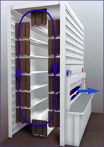 2. Een paternoster is een mappenkast met een aantal langwerpige hangers die ronddraait en gestopt kan worden als de juiste mappenhanger gezien kan worden.