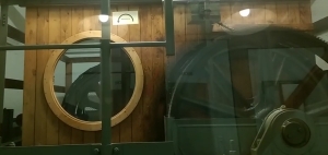 mechaniek van de paternoster bovenaan de lift; klik voor groter: ![]() |
