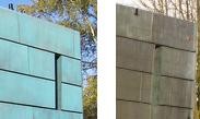 Let op: het patina is nooit gelijkmatig, de kleur varieert bij koper van lichtgroen tot blauwgroen (wat echter ook juist het "natuurlijke karakter" kan onderstrepen).