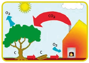 schema kringloop bij gebruik van houtpellets (van dood hout): ![]() |