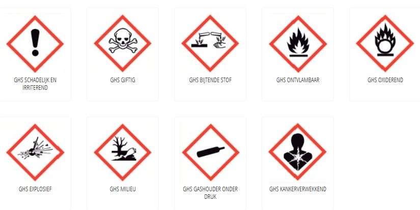 pictogrammen van gevaarlijke stoffen; klik voor groter (veiligwinkel): ![]() |