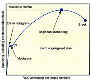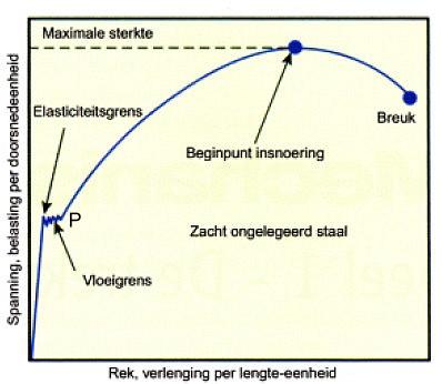 spanning-rek-diagram; rek, verlenging per lengte-eenheid bij een (toenemende) belasting; klik voor groter: ![]() |