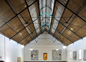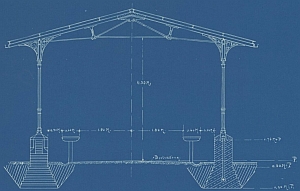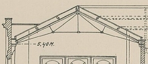 polonceau-spanten, manege haagse stadsrijschool; de trekstaven met hun "aanspanners" (spanwartels) en de dikkere gietijzeren drukstaven zijn goed te onderscheiden (cultureel erfgoed): ![]() |