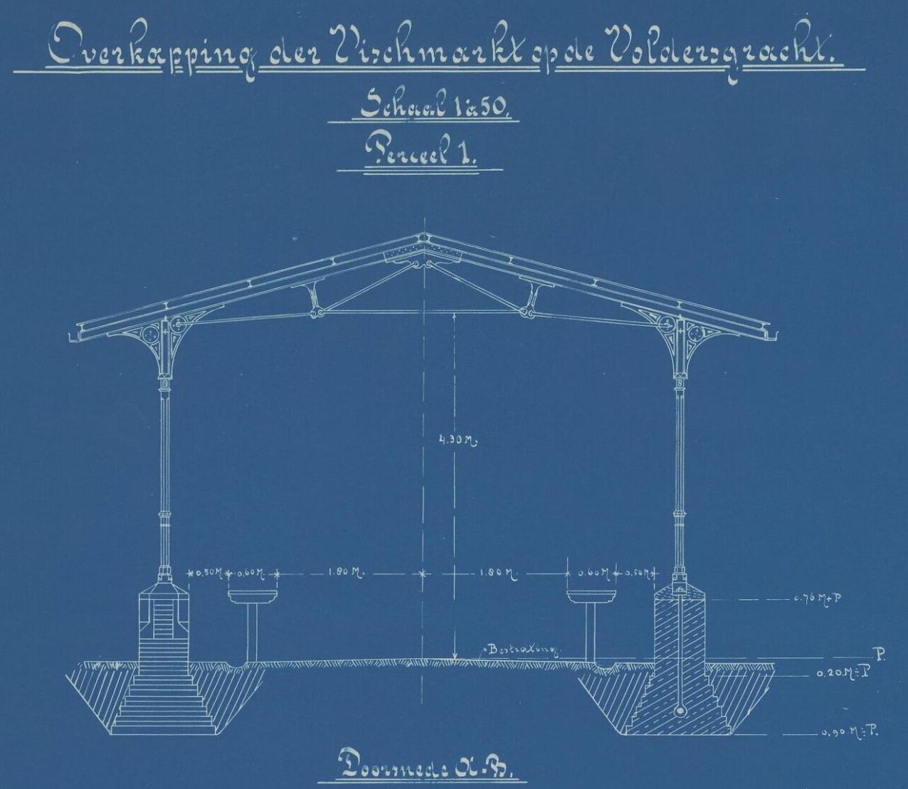 polonceauspant, vismarkt voldersgracht (vollersgracht), leiden, 1906; klik voor groter (erfgoed leiden en omstreken): ![]() |