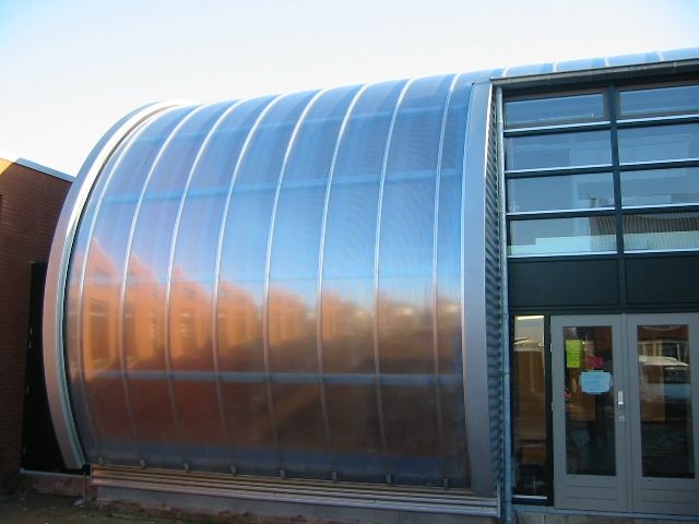Het dak van de Arena is ook van polycarbonaat, het Lexan Thermoclear polycarbonate sheet, een soort dubbelglas van polycarbonaat dat speciaal toegepast wordt tegen het binnendringen van het hitteopbouwende infrarode licht. Lexan Solar Control IR polycarbonaat heeft nog betere karakteristieken en is zowel verkrijgbaar in enkele uitvoering als in "dubbelglas".
