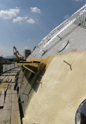 - PUR-spuitschuim bij kierdichting van kozijnen e.d., na-isolatie van bijvoorbeeld spouwmuren of gespoten isolatie voor koelcellen of stallen (sprayschuim, sprayfoam; bedenk wel dat mens en dier niet in contact mogen komen met de giftige gassen die vrijkomen bij het spuiten van pur en een tijd erna!); voordeel van spuitschuim is dat het een volume bereikt van wel 25 keer het oorspronkelijke volume en dat het zich hecht aan de ondergrond (de tweecomponentenversie van PU-schuim garandeert een maximale uitzetting)