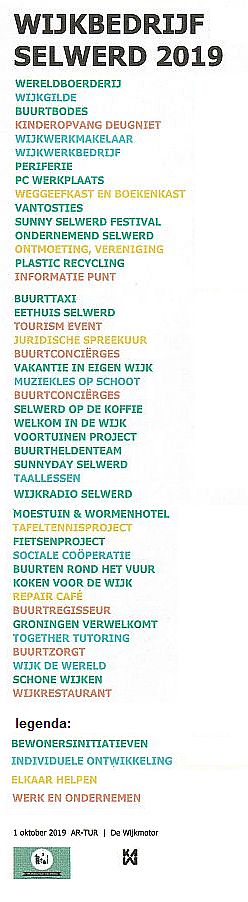 Met de Wijkmotor en het Wijkbedrijf. Architect Reimar von Meding van KAW Architecten legt in Bouwwereld 2020-01 uit dat het Wijkbedrijf Selwerd in Groningen-Noord, voor en door bewoners, wel degelijk een verbetering van de bewoners in de wijk betekent met o.m. (zie de afbeelding onder voor meer projecten en bedrijfjes):
