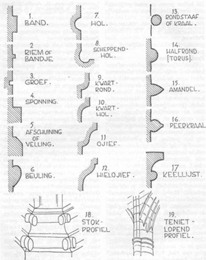 profiel is een versiering of hulpmiddel in de vorm van holle, bolle vormen, vlakke