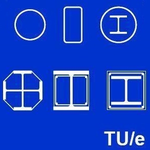 profielstaal, op druk belaste constructieve elementen (buizen en gewalste kolommen), warmgewalst, gelast, staal-beton, geperst (tu/e): warmgewalste en gelaste drukelementen: ![]() en corresponderende drukelementen van staal-beton: ![]() |
