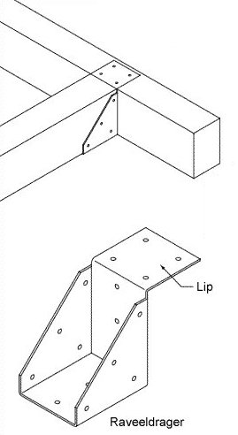 raveeldrager is een speciaal type balkdrager: een verzinkt stalen hulpstuk waarmee houten balken aan elkaar verbinden
