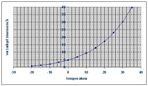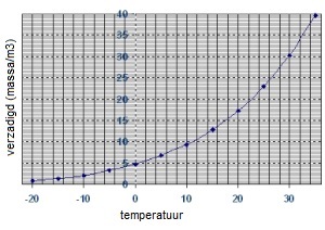 Bij een buitentemperatuur van 0 graad C is bijvoorbeeld slechts 4,0 gram/m3 aanwezig.