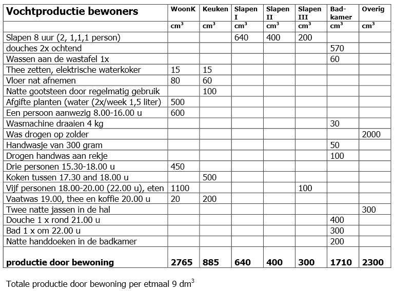 vochtproductie in woning door bewoners, per etmaal; klik voor groter! (uit vochtbalans, van evert hasselaar):![]() |