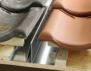 - RVS opstaand omgekeerd T-profiel als aansluiting tussen oude en nieuwe dakpannen