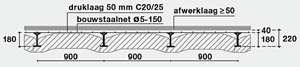 - Gecoate stalen liggers, vulelementen van EPS, betonnen druklaag en cementgebonden afwerklaag.
