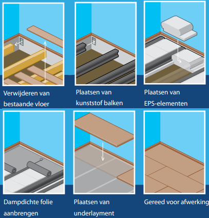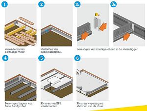 klik op de meeste afbeeldingen voor groter schematische opbouw van een vbi ps-renovatievloer, droog systeem (vbi): ![]() |