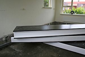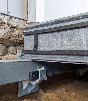 - Liggers van met staal gewapende kunststof; de liggers komen in de balkinkassingen van de oude vloerbalken; de liggers zijn van kunststof en daarmee ongevoelig voor vocht, zelfs in het geval van blank staande kruipruimten.