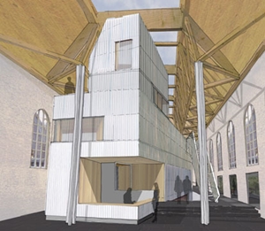 - doos-in-doos-constructies (box-in-box) waardoor de bestaande bouw zo min mogelijk wordt aangetast