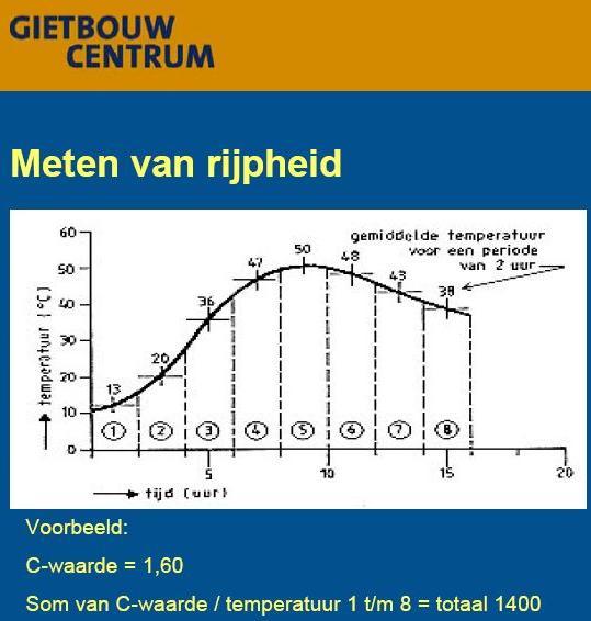"Zowel bij warme als bij koude gietbouw is het van belang dat bij het ontkisten de sterkte van het beton bekend is. Bepaling van de druksterkte gebeurt met behulp van de rijpheidsmethode.