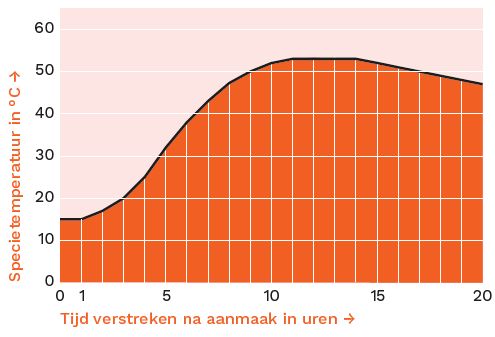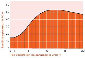 temperatuurverloop verhardend beton (in uren) in relatie met de specietemperatuur; klik voor groter (de betonpocket van betonhuis): ![]() |