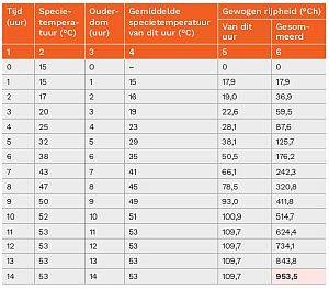 Een voorbeeldberekening van de gewogen rijpheid Rg [in Celsius hour, Ch].