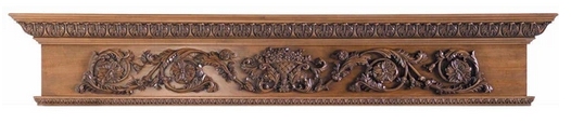 rinceau, deel van een schoorsteenmantel met houten rinceau en bloemenmandje; klik voor de volledige afbeelding (mouldings, corbels & more): ![]() |