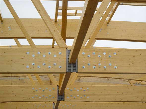 gelamineerde spanten aan elkaar gekoppeld, mede door ringdeuvels (laminated timber solutions): ![]() |
