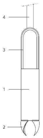 riverside boor voor harde, stugge grond met fijn grind (royal eijkelkamp): 1 = open buis 2 = lepelvormige boorwangen 3 = beugel 4 = onderstuk van de centrale staaf van de boor ![]() |
