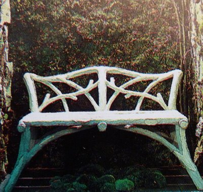 een tuinbankje van cementrustiek (rocaille) als "faux-bois": ![]() |