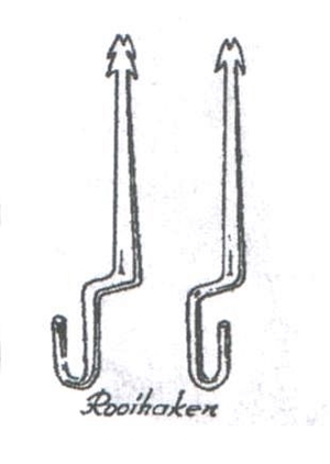 De rooihaak is een metalen blad van ca. 30-50 bij 4-5 centimeter met zijdelingse naar achter gerichte inkepingen, waarvan een uiteinde loodrecht gebogen is. Aan dat uiteinde is een metalen handvat gesmeed dat in een haak